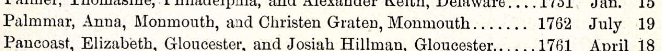 It was only last night that I located the marriage record for (Johann Christian) Greatsinger (Gretzinger) and Anne Antje Anna Palmer. Both their surnames were incorrectly spelled, which made for some creative research to locate the record! They were married on 19 July 1762 in Monmouth County, New Jersey. Their names are listed as follows: Palmmar, Anna, Monmouth, and Christen Graten, Monmouth … 1762 July 19 (see image above).