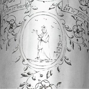 The silver communion beakers are engraved with female representations of Hope, Faith, and Charity, which I found quite fitting as we are celebrating Women’s History Month and our female ancestors.