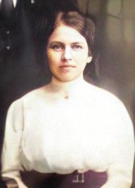 To the left is Daisy May Armstrong, my 1st cousin, 2x removed. She was born August 22, 1875, in Benton, Butler County, Kansas. The daughter of Edward Eben Armstrong and Nancy Isabella Wallace. She married on February 10, 1897, at her parent’s home in Kansas to William Taylor Tunis. In 1910 they are found living in Van, Woods County, Oklahoma where are husband is farming. They did not have any children. In 1920 she is found in Walker, Lincoln County, Nebraska, living with her husband and living with them is a nephew Henry Long aged fourteen. She is working as a schoolteacher.