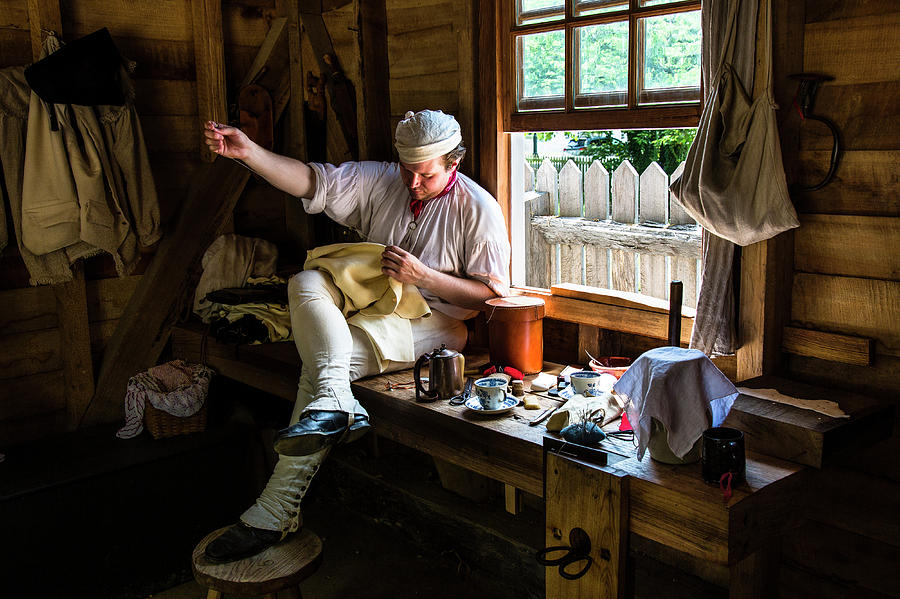 Colonial Tailor. Living history museum in Colonial Williamsburg.