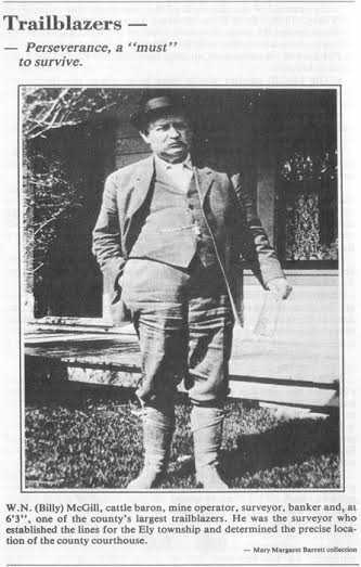 On the Nevada Adventures website of exploring ghost towns and mining camps in Nevada, I was able to find the following: William Neil McGill and his partner, William Lyons, bought Cowger’s Ranch in 1886, and soon the ranch was one of the most prosperous in the county [White Pine County]. Lyons had been the co-discoverer of Taylor in 1885, and because of his interests there, he sold out to McGill in late 1886. (4)