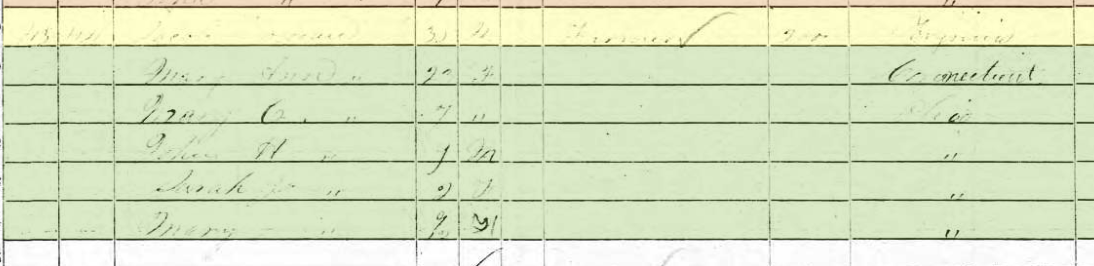 Now, I knew from later census records that the Mary Ann that I am descended from was born about 1827 in Connecticut. She would have been about ten to eleven years old at the time when Jacob Doman married the first Mary Ann (Chamberlain).