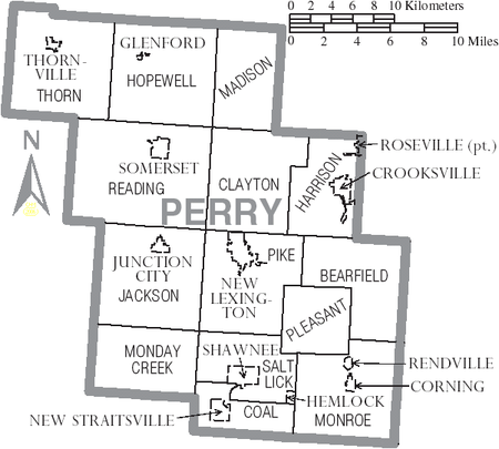 I do not find the family living in Jackson Township as is listed in the biographical sketch as the place he grew-up, but Jackson Township borders with both Pike and Monday Creek Townships.