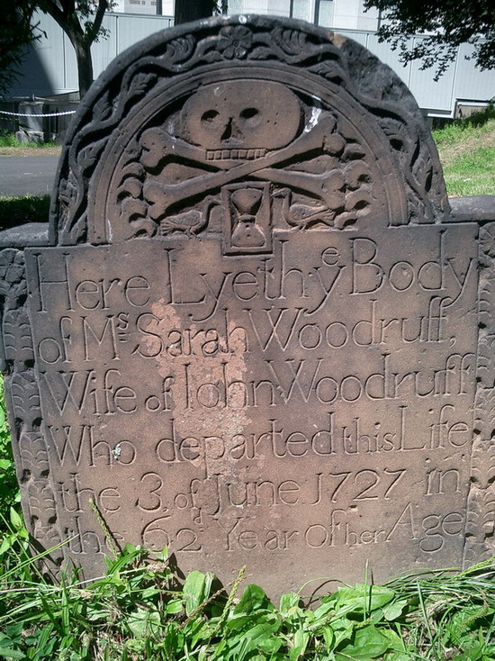 Sarah was born 17 March 1666 in Springfield, Hampden County, Massachusetts. The daughter of Timothy Cooper and Elizabeth Munson. She married 25 October 1683 in Jamaica, Queens County, New York, to John Woodruff. She died 3 June 1727 in Elizabeth, Union County, New Jersey. She is buried in the First Presbyterian Churchyard in Elizabeth.