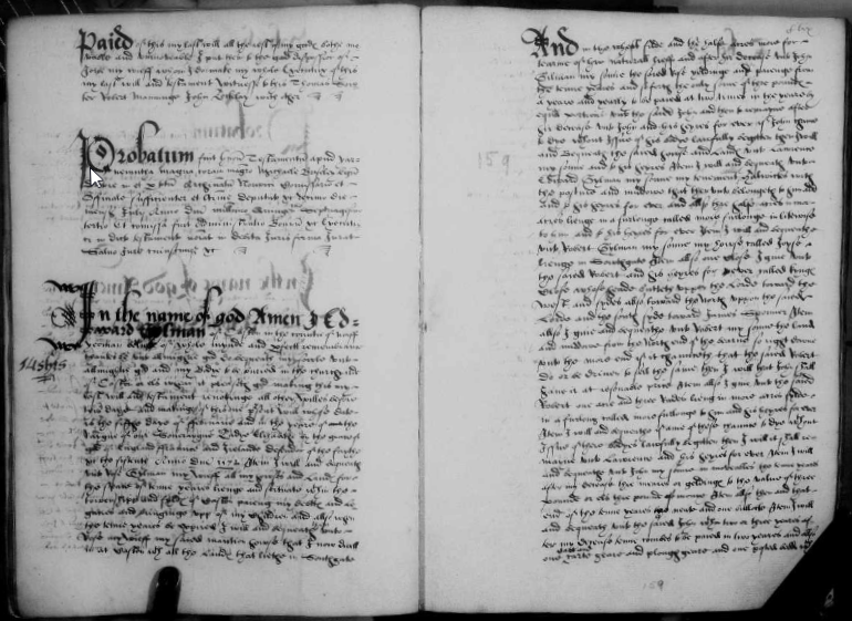 Norfolk > Caston > 1539-1720 > image 8 of 36 Norfolk Record Office; Norwich, Norfolk, England; Norfolk Church of England Registers. - Will of Edward Gillman, yeoman of Caston: Archdeaconry Court of Norwich, register copy will 1573, volume Bussell, folio 158. Norfolk Record Office, Norwich, Norfolk, England.
